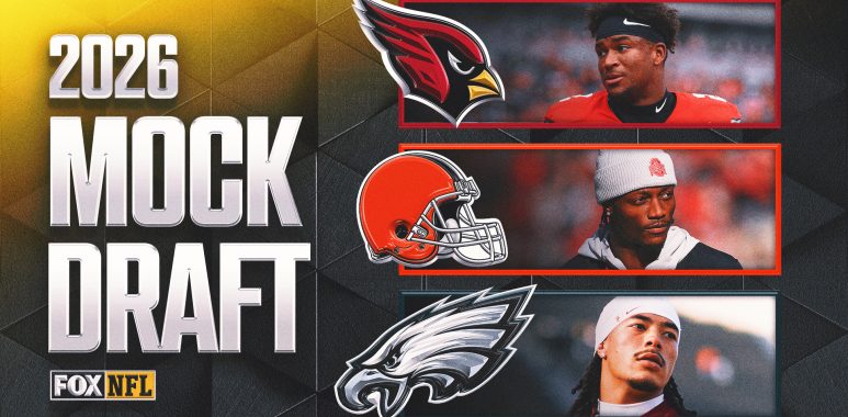 Notre Dame star running back Jeremiyah Love has seemingly become a top-five staple in the majority of mock drafts as of late, but should he go that high? Should the Pittsburgh Steelers add a quarterback in the first round of this year’s draft, with Aaron Rodgers’ future still in question? Do the Philadelphia Eagles have to add a wide receiver as rumors about A.J. Brown’s future persist? FOX Sports Research aimed to answer those questions in our latest first-round mock draft. With most of the big dominoes in free agency already falling, those answers might define the rest of the NFL offseason as teams begin to report for their spring programs. But as we’re still two-plus weeks away from the 2026 NFL Draft, let’s take a closer look at how we think the first round will go, factoring in team needs, combine performances and production from this past college football season. This page may contain affiliate links to legal sports betting partners. If you sign up or place a wager, FOX Sports may be compensated. Read more about Sports Betting on FOX Sports. 1. Las Vegas Raiders: Fernando Mendoza, QB, Indiana Despite a Pro Day performance that didn’t meet expectations, Mendoza is still a lock to go to Las Vegas. He has exhibited all the tools you want to see in a top QB prospect: elite arm strength, the ability to throw into tight windows, and sneaky mobility for a 6-foot-5 signal caller. The Heisman winner led all of FBS with 41 passing touchdowns this season, which is also the Indiana single-season record. 2. New York Jets: Arvell Reese, LB, Ohio State Here’s another lock in this draft. Reese is the best player available and New York has multiple holes to fill. He’s cemented himself as the clear-cut best linebacker in the country. Due to his elite speed for his size, he can drop back into coverage as an off-ball backer or line up on the edge and rush the passer. Reese had 6.5 sacks and two passes defended on the year, and 112 total tackles in two seasons for the Buckeyes. 3. Arizona Cardinals: Caleb Downs, S, Ohio State Despite needing an offensive tackle, Arizona needs to land a cemented star with this pick. Downs might be the smartest football player in this draft, having lined up all over the field during his time at Alabama and Ohio State. This past season, he played 44 snaps on the defensive line, 241 in the box, 146 at slot corner, nine at wide corner, and 240 at free safety. For his career, he’s totaled 256 tackles, 163 solo tackles, 10 passes defended and six interceptions. There is nothing Downs can’t do, and whatever team gets him is landing a perennial Pro Bowler. 4. Tennessee Titans: Francis Mauigoa, OT, Miami (Fla.) Tennessee allowed 56 sacks this year and needs a tackle to pair alongside JC Latham. Mauigoa is a blue-chip prospect with freakish tools for an offensive lineman. According to Pro Football Focus (PFF), he’s given up just three sacks in 1,099 pass blocking snaps over the past two seasons — and in 2023, he was a freshman All-America selection. He can also move into the interior with his frame and agility, and has dominated throughout Miami’s CFP run. 5. New York Giants: Spencer Fano, OT, Utah At 6-6 and 308 pounds, Fano is another new-era offensive tackle with incredible athleticism for his size. In three seasons, he’s given up just three sacks and seven QB hits, highlighted by a 2025 campaign in which he didn’t allow a single sack in 382 pass blocking snaps, according to PFF. New York needs to protect JaxsShoulon Dart and Fano is the perfect player to achieve that. 6. Cleveland Browns: Carnell Tate, WR, Ohio State Arguably the best receiver in this draft, Tate is next in the long line of pro Buckeye receivers. At 6-3, 195 pounds, he’s a big receiver who can dominate in the red zone while also serving as a deep threat. This year, he’s one of 12 Power 4 receivers to have nine receiving touchdowns and over 800 receiving yards. He’ll provide an instant offensive boost for a Cleveland offense that struggled all of last season. 7. Washington Commanders: Jeremiyah Love, RB, Notre Dame The Commanders’ run game was strong last year, ranking fourth in the league at 134.7 rush yards per game. But much of those numbers were inflated due to the fact that Jayden Daniels missed 10 games. Love has 35 rushing touchdowns since 2024, which is the most of any player in that span, and has averaged 6.9 yards per carry over the last two seasons with a whopping 2,497 rushing yards. 8. New Orleans Saints: David Bailey, edge rusher, Texas Tech Bailey was tied for the FBS lead in sacks this past season at 14.5 and led all Power 4 players, as well. Even looking back at his three seasons at Stanford, he’s had consistent production, totaling 28 sacks from 2022 to 2025, the third-most of any player in that span. He’s a bit undersized at 6-3 and 250 pounds, but there’s no denying his bend and burst off the edge. He is the perfect replacement for Cam Jordan. 9. Kansas City Chiefs: Sonny Styles, LB, Ohio State Styles shot up draft boards after his combine performance, having run a 4.46 forty-yard dash with a 43.5-inch vertical jump at 6-5, 244 pounds. In his past two seasons at Ohio State, he’s totaled 183 tackles, 95 solo tackles, eight passes defended, seven sacks, and two forced fumbles. He hits like a truck and can move well in space. Kansas City could go tackle here, but Styles is too good to pass up when considering his ceiling. 10. Cincinnati Bengals: Mansoor Delane, CB, LSU No cornerback in Power 4 had a higher pass coverage grade on PFF than Delane at 90.9. In 357 coverage snaps, he gave up just 13 receptions for 147 yards and no touchdowns with opposing QBs sporting a 26.7 passer rating when targeting him. He’d be a huge addition to Cincinnati’s secondary, which is lacking a lockdown corner. 11. Miami Dolphins: Rueben Bain Jr., edge rusher, Miami (Fla.) Bain is a top-five player in this draft, but will likely fall a bit because of the conversation