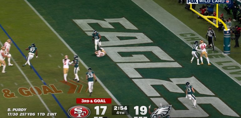 Brock Purday connected with Christian McCaffrey for a four-yard touchdown to give the San Francisco 49ers’ lead over the Philadelphia Eagles.