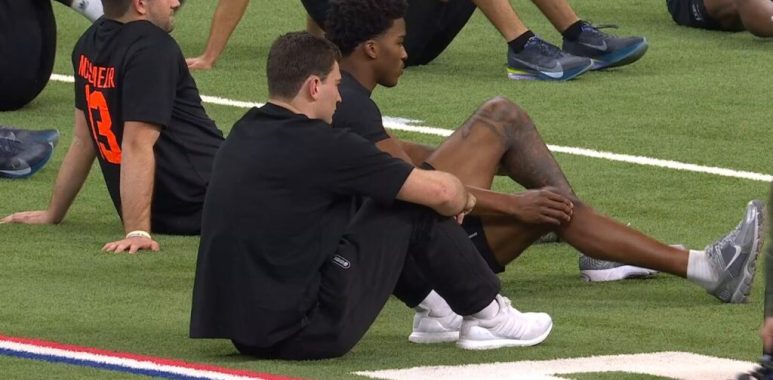 “He might not be running drills but he’s not disappearing either. Stretching with the group keeps him visible and involved. NFL teams evaluate everything not just throws and 40 times. Body language, attitude, presence… it all counts,” someone wrote in the comments.