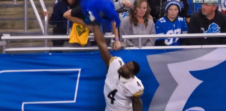 That’s because cameras caught the WR grabbing a fan in the stands before striking him in the face.