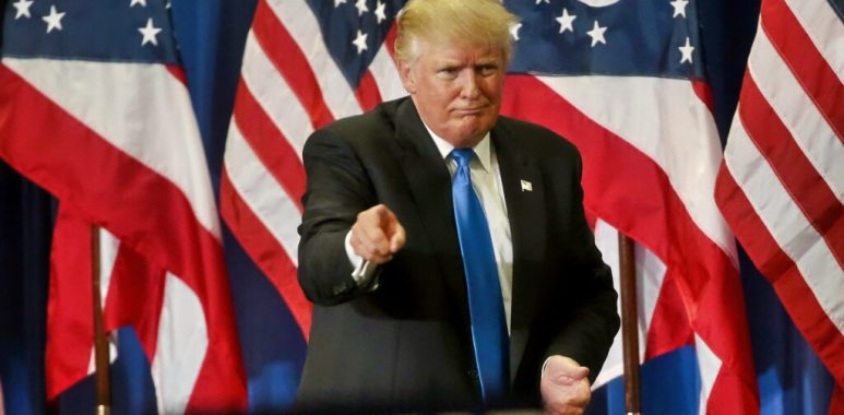 Donald Trump thanks the crowd as he wraps up his speech