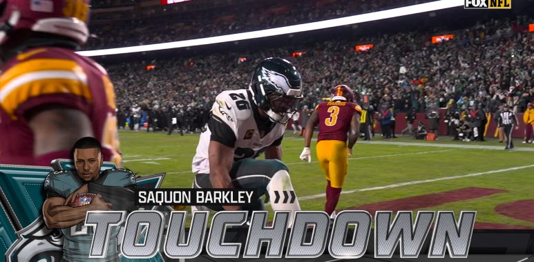 Saquon Barkley powered in for a 12-yard TD, extending the Philadelphia Eagles’ lead over the Washington Commanders.