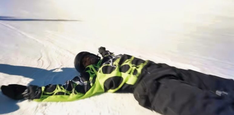 Shilo Sanders lying on snow