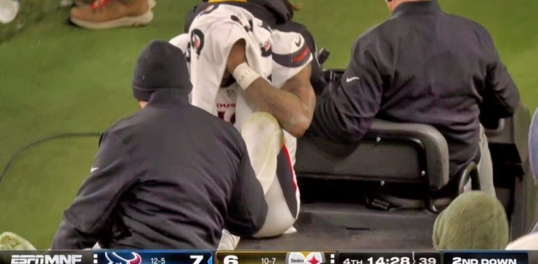 During Monday’s physical defensive slugfest, CJ Stroud just missed Nico Collins on a pass over the middle. Collins’ head slammed into the turf in a scary scene, and he had to be carted off.